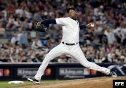 En el juego de la jornada de finales que se llevó a cabo en Nueva York, el cerrador cubano Aroldis Chapman se acreditó el rescate en el triunfo de los Yankee por 1-0 sobre los Indios de Cleveland.
