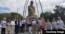 Finalmente, el 28 de enero, el exilio cubano llevó a cabo una actividad de ofrenda floral ante la estatua de Martí en Santo Domingo donde Gutiérrez y el Dr. Castillo fueron los oradores principales.